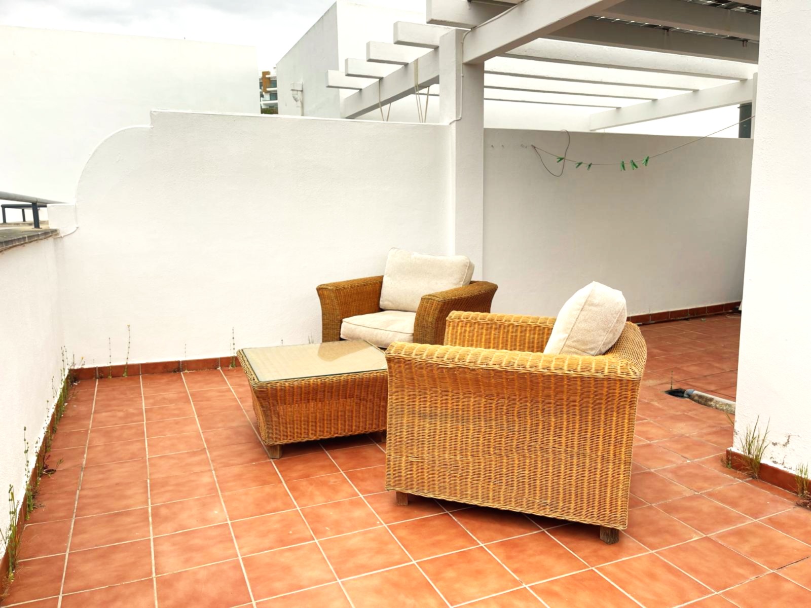 Forma parte de una comunidad con piscina y podrás aparcar fácilmente en la calle privada. A tan solo 2 minutos caminando de la playa, restaurantes, supermercados y la estación de Cercanías.